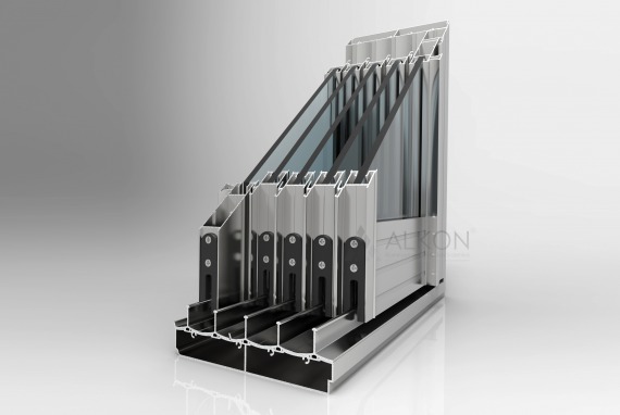 Eşikli Eşiksiz Kenetli Sürme Seri 2 raylı, 3 raylı, 4 raylı ve 5 raylı olarak 2 camdan 10 cama kadar yana kayar şekilde sağ ve sola açılabilir kullanıma sahiptir. Her iki sistemde de 8mm ve 10mm ve 4+12+4 ısıcam kullanılabilmektedir. Her panelde 2 makara taşıyıcı vardır, 150 Kğ taşıyıcı makaralar 2 rulmanlı olarak dizayn edilmiştir. 4 rulmanla panel ağırlığı yükseklik ayar vidası ile dengelenerek sessiz ve rahat kullanım sunar.